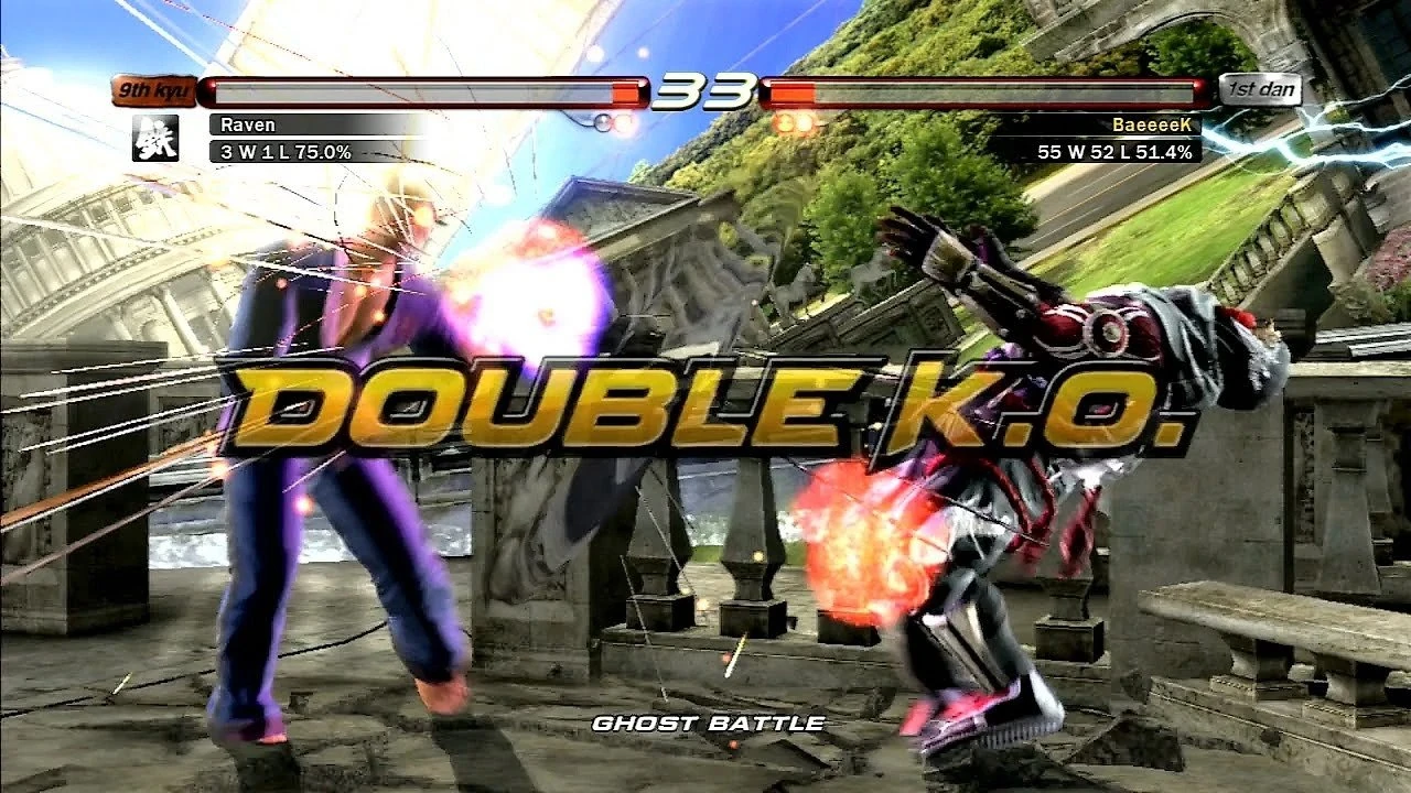 Si el jugador necesita obtener solo una ronda para ganar y termina en un Doble K.O. la ronda generalmente irá a la IA, dependiendo del rango del jugador. En juegos anteriores sin un sistema de clasificación, un doble K.O. en la ronda final siempre contará como una victoria para la IA.