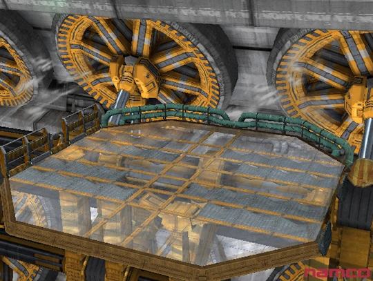 - Se puede ver a la mascota de Namco, Pac-Man, acompañando los mensajes en movimiento en las ventanas en este escenario.