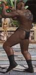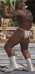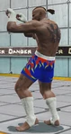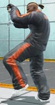 On note que Bruce possède une tenue de la ligne de vêtement de Snoop Dogg. Elle consiste en un survêtement noir sur lequel le col, le fermeture et les poches sont rouges. De la même manière, les bandes de l'ensemble sont là aussi rouge. Il porte des gants noirs ainsi que des baskets blanches.
