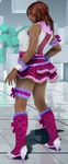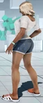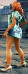 En combat miroir, sa veste devient turquoise, son bikini brun rouge et son pantalon également avec des rayures blanches.