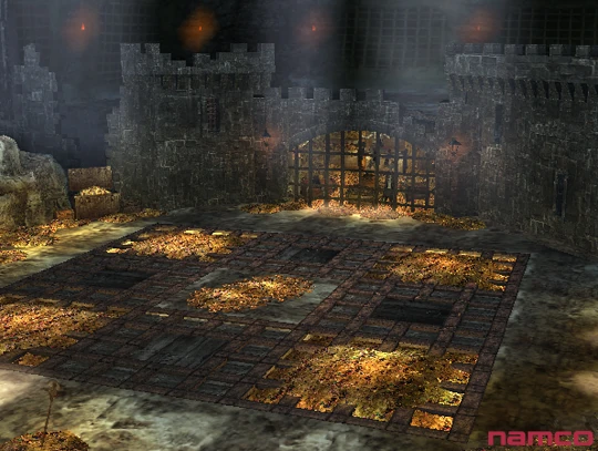 Un château avec des créneaux au niveau des remparts est également présent, éclairé par des flammes dans des lanternes. Une porte en métal bloque l'accès et on peut y trouver de l'autre côté plusieurs squelettes accrochés aux barreaux. On peut également y trouver davantage de coffres et des pièces d'or derrière.