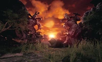 When the fight starts, the battle is set at sundown. When one character reaches match point, the sun goes down and a red moon takes its place over the mountains in the background. If the match gets taken to the final round (where both players are at their final point), a thunderstorm descends on the area, meaning the stage has three variations during the match (compared to stages like Dragon's Nest or Mishima Building, which only change when one character reaches match point). Originally this was the only stage with such a feature but the Hammerhead stage (added with the patch that added Noctis Lucis Caelum to the roster) also features three variations.