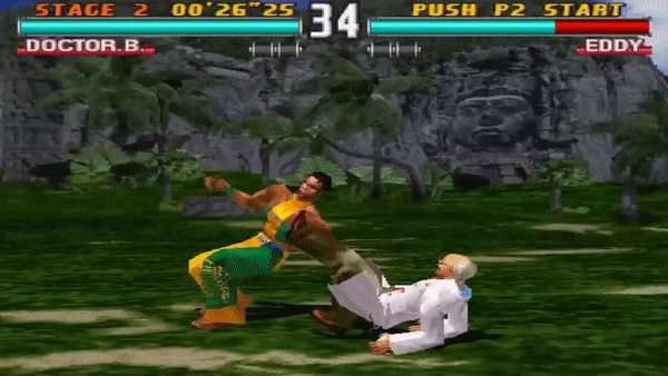 In Tekken 2, an alternate version of the move can be performed from a knockdown position, with the initial input being 3~4 instead of d/b+4, however it was removed in Tekken Tag Tournament. Doctor Bosconovitch can only perform the move from a knockdown position. The first kick of this variation deals zero damage.