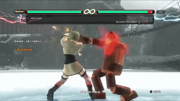 Arm Lock is a combo throw that is used by Anna Williams from Tekken 2 onwards. It is part of the Chin Bash Combo, and follows from Chin Bash before leading to Arm Break Takedown or Rolling Arm Break. Escaping the Arm Lock will deal 5 damage to Anna.