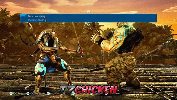 Back Handspring (伽藍, Garan?, lit. "Sangharama") is a move used by Yoshimitsu since Tekken 4.