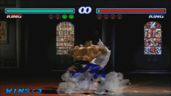 King putting Nina Williams in a Boston Crab in Tekken 2.
