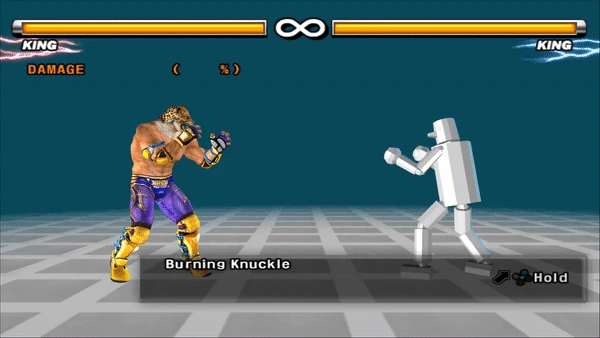 Burning Knuckle is an unblockable move introduced in the Ver.B arcade edition of Tekken 2 and it was used by Armor King I and his younger brother Armor King II starting from Tekken 5: Dark Resurrection. In Tekken 4 onward, King II also utilizes this move. Ogre and True Ogre can also perform this move from Tekken 3 onwards. Prior to Tekken Tag Tournament, it was known as Burning Double Knuckle. When performed by the Ogres in Tekken Tag Tournament, it is called Super Knuckle Bomb.