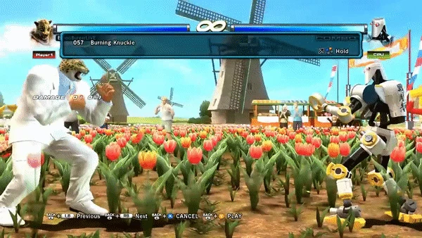 Armor King, Ogre and True Ogre also have a second variation of this move, Jump to Burning Double Knuckle. Its input is u/f,N,1+2,D. In Tekken 2, Armor King can also perform the move with u,N,1+2,D but lost this ability when sidestepping was introduced in the following game. Armor King's variation is called Jumping Burning Knuckle in Tekken Tag Tournament, however when the jumping version is performed by the Ogres in Tekken Tag Tournament it is oddly called Burning Double Knuckle without the jumping reference.