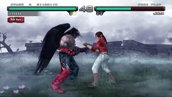 As a move that can be spammed against an unguarded opponent, the Demon Backhand Spin can give the player a solid frame advantage much like the Demon Slayer. This is possible because the move is simpler, easy to perform, and runs at -10 frames, but it is rarely used due to the superior damage and range of the normal Demon Slayer and the greater flexibility of the Flash Punch Combo, both of which are also 10-frame attacks.