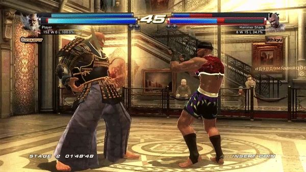 The user performs a right punch and follows up with a quick spinning back fist. When used by Ogre in Tekken Tag Tournament 2, the initial right punch is instead an elbow.