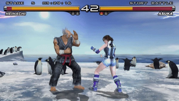 In Tekken 3, the opponent will be sent rolling away on a counter hit similar to Heihachi's Heavy Power Punch, however the roll property was removed in Tekken Tag Tournament with the opponent now being able to tech roll on counter hit, albeit still being sent far away. In Tekken 3, the CPU opponent will usually attempt to interrupt the kick, with the kick beating the CPU's attack and setting the user up for an Unblockable Tackle for significant damage. Against large characters such as Jack, it can also be used as a juggle ender in place of Demon Massacre.