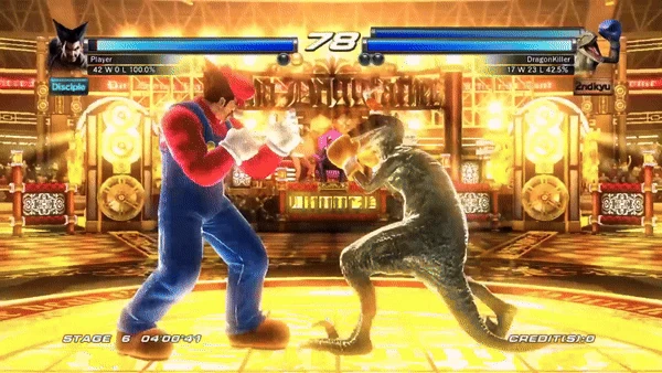 A variation of the Funkei Uraken, Heihachi performs the first hit of the string then ends with a Demon Shout. If up or down is held before the Demon Shout is executed Heihachi will feint instead and begin sidewalking in the direction held instead of striking.