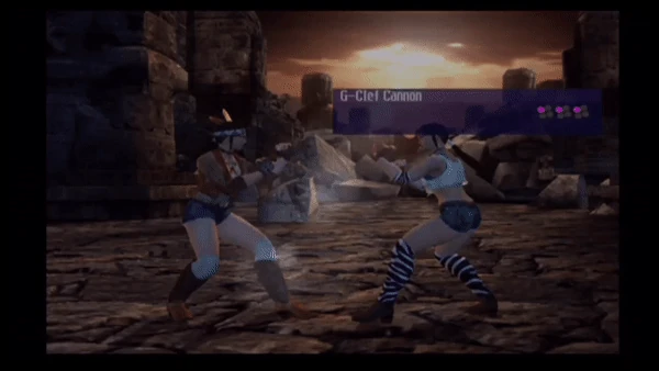 From Tekken 3 until Tekken 4, by holding F for one step, the first punch can cause 6 damage instead of 5 for the delayed G-Clef Cannon (the non-delayed G-Clef is still 10 damage for the first punch). The one step overrides the f+1 input that would otherwise trigger a Flash Uppercut. This only applies to Michelle and Julia, and no longer works as of Tekken 5.