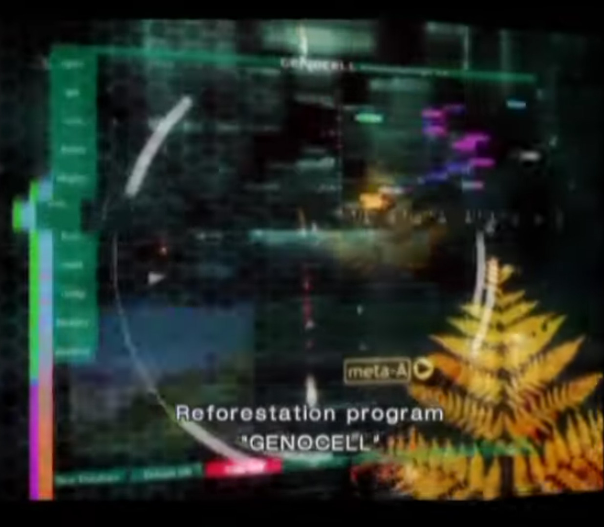 GENOCELL was the name of a forest rejuvenation project lead by a team of scientists and researcher. The head researcher was Professor T and one of his team was Julia Chang. GENOCELL has biological purifying qualities that seem to stimulate biological growth. The main purpose of GENOCELL was to reforest deserts in Julia's home state of Arizona. It was funded and supervised by G Corporation and its data was located in one of the G Corporation's maximum security labs.