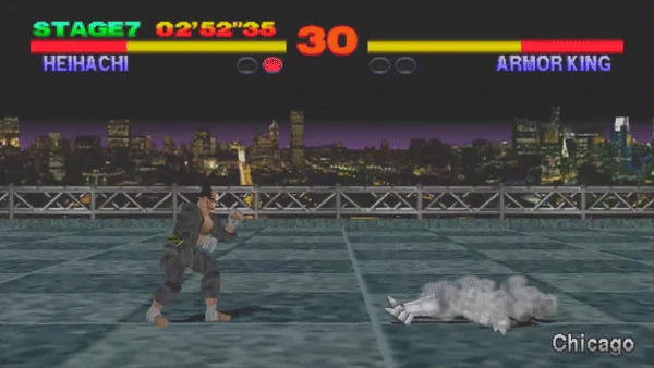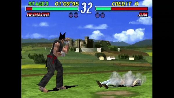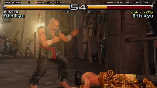 Earth Scraper Kick, originally called Jumping Low Kick prior to Tekken 8, is a move performed by Heihachi Mishima since the PlayStation version of the first Tekken game. In games prior to Tekken Tag Tournament, it caused a regular knockdown on hit, but in later games, it leaves the opponent face down. It can also be performed during a Demon Hop. The arcade version of Tekken does not have this move.