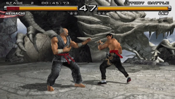 Heihachi steps to the side then delivers a harsh body blow with his right hand.