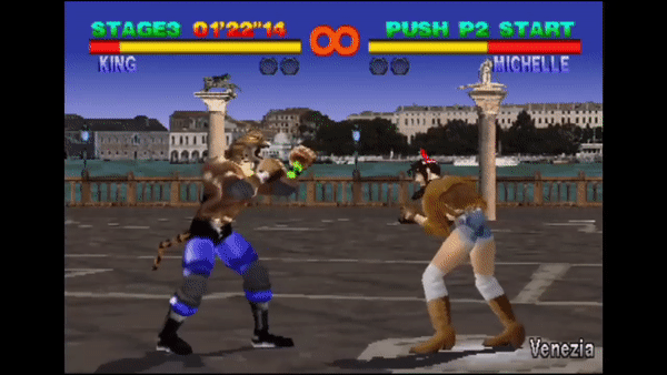 With King, the input was originally 1+3 in Tekken and Tekken 2, but as of Tekken 3, the input changed to d/f+2+3. The escape input is 1+3 in Tekken 2, and 1 in Tekken 3 and later games. Armor King's input remains 1+3 throughout the series and shares the same throw escapes as King.