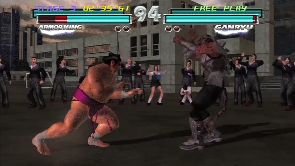 Starting with the PlayStation version of Tekken, Armor King's version of the Knee Bash was slightly modified, making the opponent roll over after being slammed, instead of bouncing back on impact.