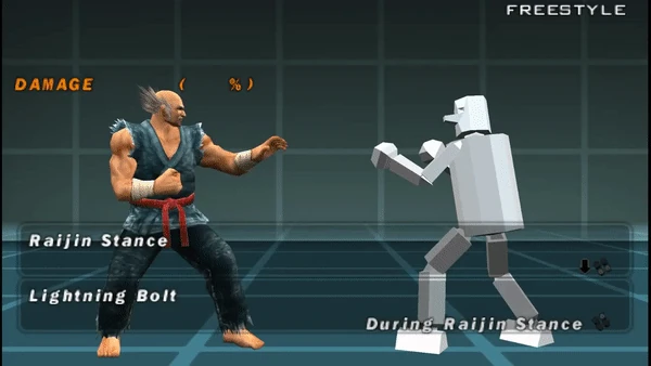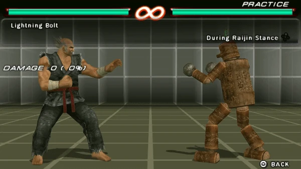From its debut until Tekken 6, the attack's damage could be buffed by waiting in Raijin Stance for an extra amount of time. Though the damage buffing property was removed in Tekken Tag Tournament 2 when the Raijin Stance was reanimated.