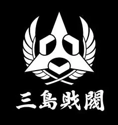 The Mishima Zaibatsu logo is a mon consisting of a three-pointed throwing star layed over a shield, with crossed feathers behind. The three points used in the mon are likely a reference to the three (mi) in the Mishima name.[6] Often the Zaibatsu's name in Japanese is written beneath the mon (三島財閥).