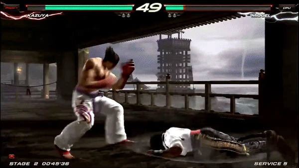 When his opponent is lying on the ground, Kazuya stomps them with his right foot.