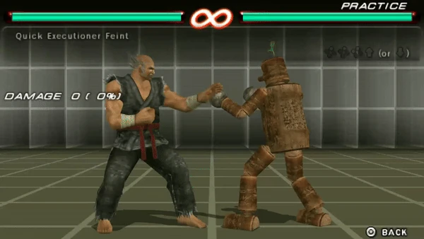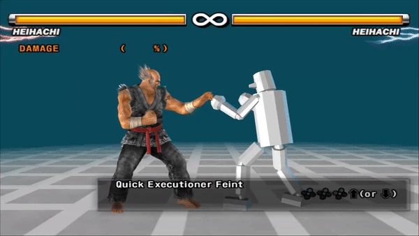 Quick Executioner (弐連剛掌破・否 Niren Gōshōha: Ina?, lit. "Double Heavy Palm Blast: None") is a move used by Heihachi Mishima since Tekken 5. It is the first hit of the Quick Executioner but instead of performing the final hit (the Demon Shout) Heihachi simply sidewalks around his opponent.