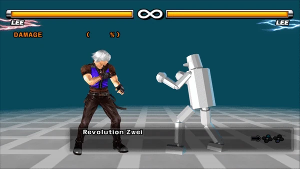 Revolution Zwei is a move introduced in Tekken 5 and it was used by Lee Chaolan. His alter-ego Violet can also perform this string in Tekken Tag Tournament 2, albeit with a different command.