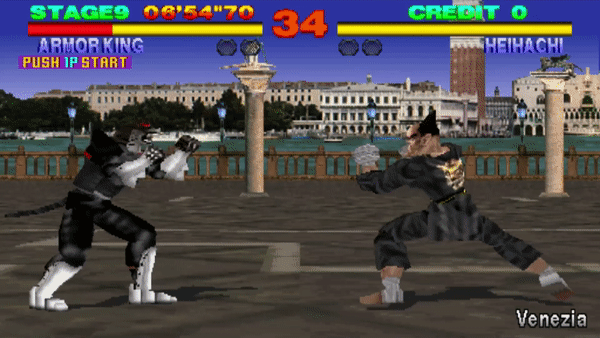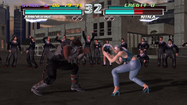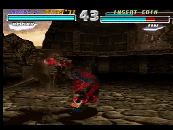 From Tekken 2, Armor King can also perform Stagger Kicks after a small hop, where the move is called Jump to Stagger Kick, however the Ver. A arcade edition of Tekken 2 does not have the move.
