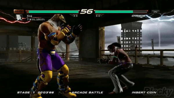 While King still uses the original Toll Kick's animation, Armor King II uses a new animation. In Tekken 8, the attack acts as one of King's Power Crushes.
