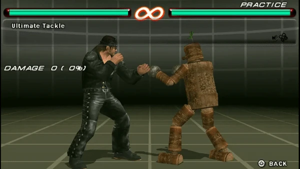 In Tekken 2, an Ultimate Tackle can be escaped with 2+4, however a running tackle cannot be escaped at all. The escape was changed to 2 in Tekken 3. If an Ultimate Tackle is performed on a back-turned opponent, it cannot be escaped. Starting in Tekken Tag Tournament, characters can now escape from an Ultimate Tackle whether they are back-turned.