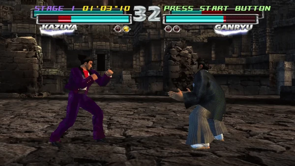 Heihachi's Wind God Fist in Tekken 3 is unchanged from its Tekken 2 iteration, albeit weaker, but due to the updated game engine it can be initiated one frame earlier than the previous game, as it can now be inputted as f, N, d, d/f:2 without requiring the extra d/f frame. This "just frame" input was replaced by Heihachi's own Electric Wind God Fist in later games.